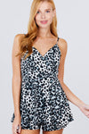 V-NECK FLOUNCE SKIRT LOOK OVERLAY PLEATS DETAIL PRINTED KNIT ROMPER