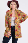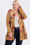 Plus Size Flower Print Pocket Flower Print Hacci Cardigan
