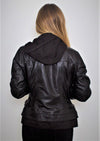 Womens leather jacket. Zippered mid-section. Fleece inner with hoodie. Four pockets: Two chest, Two side. Material: 100% genuine leather Soft & Supple lambskin leather. This women's leather jacket is perfect for those cold long days. You won't ever have to layer up again with its soft, and comfy fleece inner. Just throw this jacket on with its leather sexy leather exterior and soft interior and you won't be disappointed. Lambskin leather. Priced to sell.
