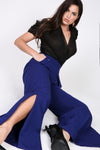 Imported S.M.L SIDE SLIT DETAIL WIDE LEG PANTS 95% Polyester 5% Spandex Cobalt Blue CAR