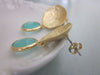 Opal Blue gems measure 12.6mm by 16mm and are in a bezel setting. The mushroom measures 17mm in diameter. There are sterling silver posts attached to the mushroom coral. The gold on the corals and around the gems are 16k gold plated. The earrings are approximately 1.25 inches.