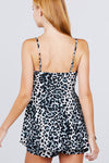 V-NECK FLOUNCE SKIRT LOOK OVERLAY PLEATS DETAIL PRINTED KNIT ROMPER