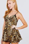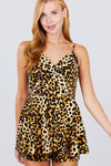 V-NECK FLOUNCE SKIRT LOOK OVERLAY PLEATS DETAIL PRINTED KNIT ROMPER