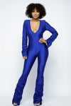 Made In U.S.A S.M.L YOGA SHOULDER PADDED RUCHED STACKED JUMPSUIT 82% Polyester 18% Spandex Royal Blue BEL