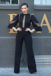 Semi Sheer Mesh Contrast Bodice Jumpsuit