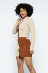 Rib Color Block Mock Neck Long Sleeve High-waist Mini Skirt With Front Zipper Set