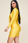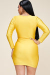 Made In U.S.AS.M.Llong sleeve solid tie front short dress96% Polyester 4% SpandexYellow MIS
