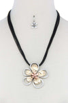 Imported TWO TONE FLOWER PENDANT PU LEATHER NECKLACERose Gold.Silver.Patina.GoldFBJ