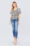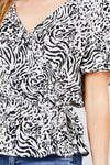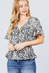 Ruffle Short Sleeve V-neck Surplice Side Ribbon Tie Woven Top