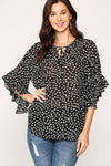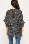 Imported S.M.L Leopard Printed Crepe Top with a Tying V-Neckline, Ruffled Sleeves, Rounded Hemline 100% Polyester Black GIG