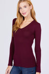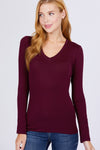 Imported S.M.L COTTON JERSEY V-NECK TOP 95% Cotton 5% Spandex Fruity Plum ACT