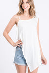 Made In U.S.A S.M.L Solid knit top is fearing a Round neckline and side hi-low 95% Rayon 5% Spandex Off White CYF