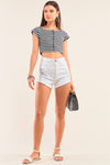 Black And Grey Striped Square Neck Mini Sleeve Cropped Top