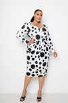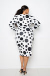 Imported IXL.2XL.3XL POLKA DOT DROP WAIST RUCHED MIDI DRESS 96% Polyester 4% Spandex Black Dot BBA