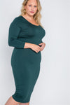 scoop neck, long sleeves, solid, bodycon silhouette, midi length, unlined
