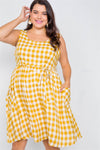 Plus Size Scoop Neck Side Pockets Checkered Gingham Midi Dres