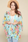 Plus Size Floral Printed Oversize Flowy and Airy Kimono with Dramatic Bell Sleeves