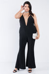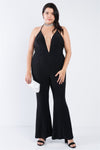Plus Size Black Sequin Criss Cross Open Back Jumpsuit