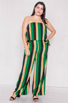 Plus Size Green Multi Stripe Open Back Jumpsuit