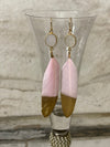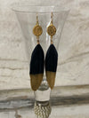 Gorgeous druzy/feather earrings. Choose color at checkout. 14k gold filled is great for sensitive ears and is nicer in quality. Measures approx 3.5" long.**Please note that since druzy is a natural element, each piece will be unique in crystals, height, and could slightly vary in color; however, they are sourced from the best possible ones! This also goes for the feather as each is unique.**
