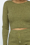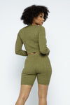 Knit Long Sleeve Cropped Top Knit High-waist Biker Shorts Set