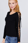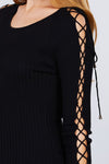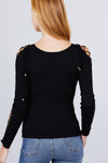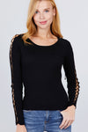 Imported S.M.L LONG SLEEVE W/STRAPPY DETAIL ROUND NECK RIB SWEATER TOP 70% Rayon 30% Polyester Black ACT