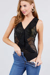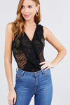 Sleeveless Surplice W/ruffle Lace Bodysuit