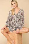 Animal Print Button Down Lapel Collar Shirt with Chest Pocket